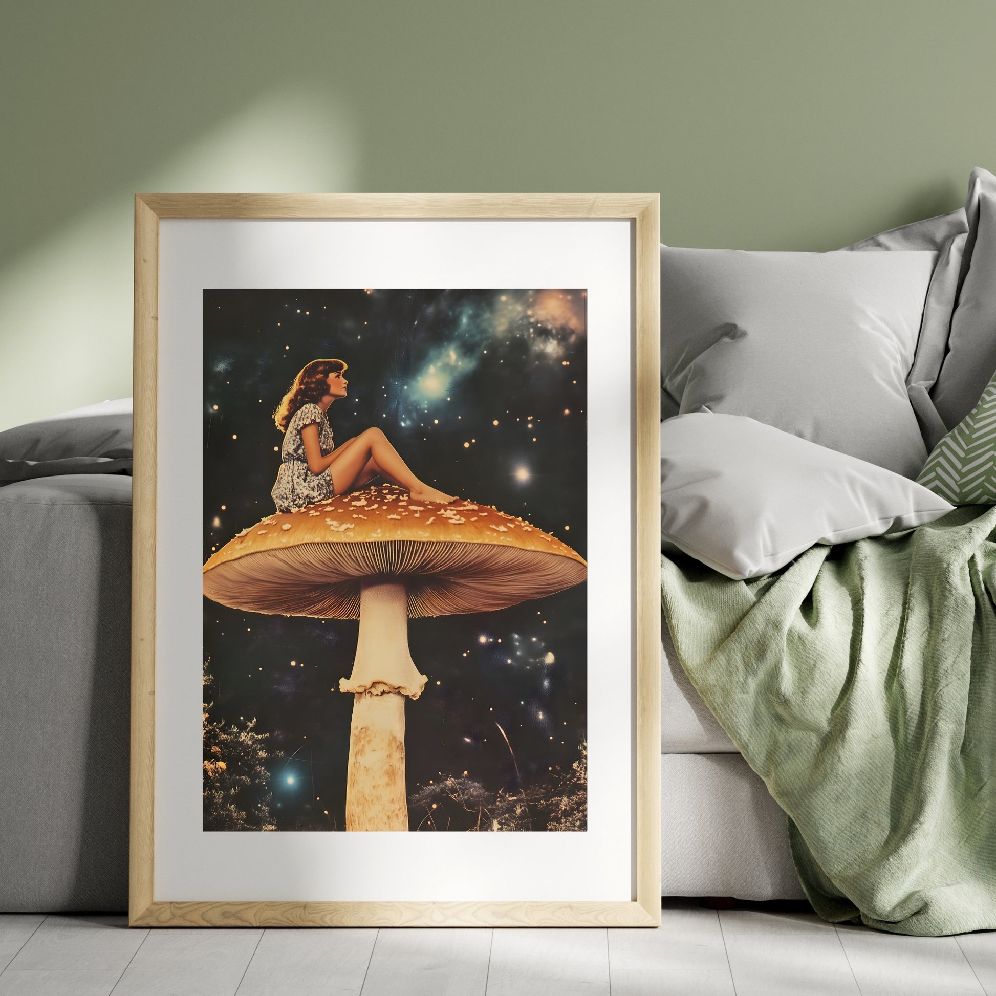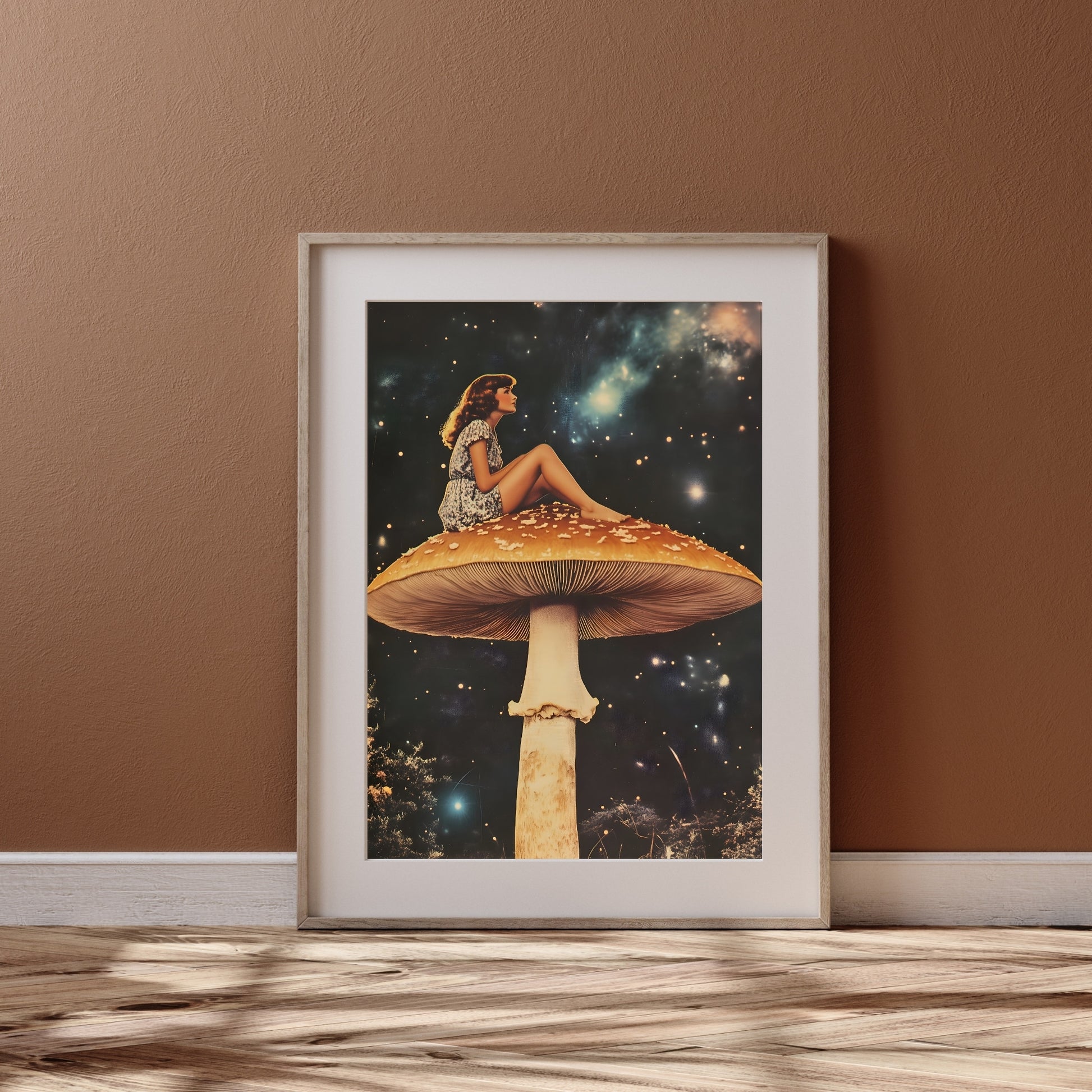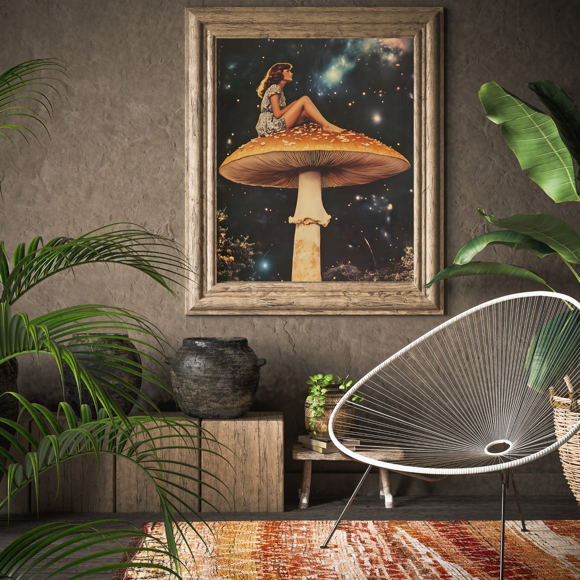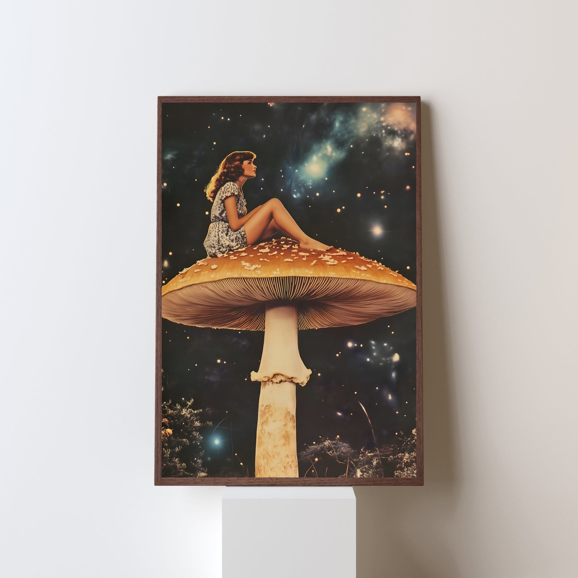 Sitting atop a cosmic key - one that nature herself provides - she surrenders to the great mystery, dissolving the illusion of separation. In this moment, time bends, reality blurs, and infinity embraces her like an old friend.