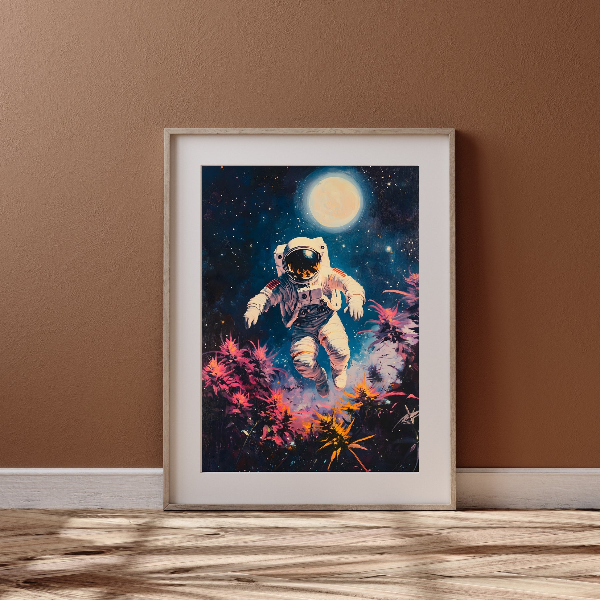 Who knew the best crops in the universe were growing under the light of a full moon? Somewhere in deep space, this astronaut has found the ultimate cosmic greenhouse, where gravity is optional, the flowers glow, and every harvest is bathed in stardust.