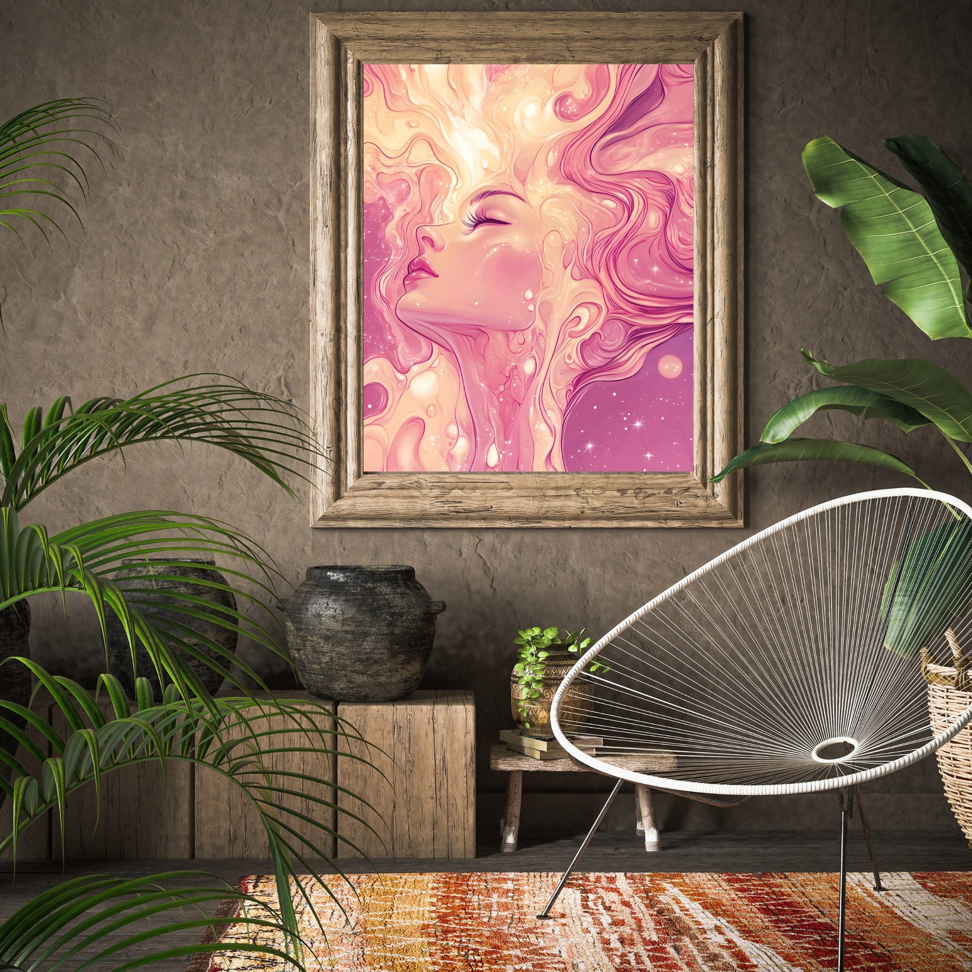 In this moment, she is no longer separate from the cosmos - she is the cosmos. Her soul hums with the rhythm of galaxies, her breath dances with the light of distant suns.